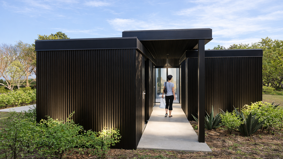 Designed as a shared facility for group activities, the Communal Space supports yoga sessions, gatherings, and communal use. The open-plan layout is defined by natural light and effective cross-ventilation, creating a flexible and well-ventilated environment. An integrated kitchen supports shared functions, while repurposed shipping containers accommodate a massage room, storage, an accessible bathroom, WC, and shared laundry. These elements provide functional efficiency while introducing distinctive architectural volumes to the overall composition.